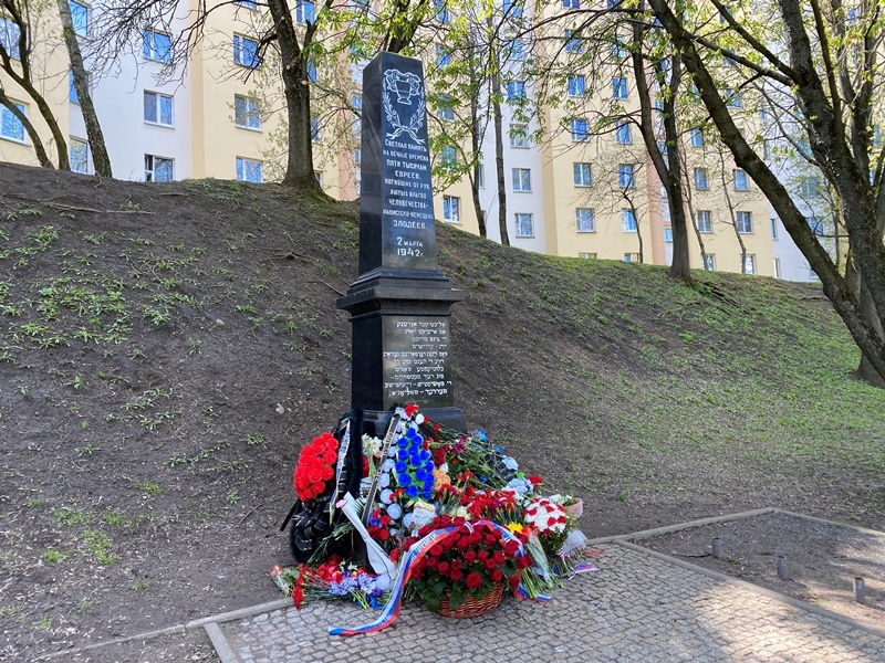 Мемориал жертвам гитлеровского геноцида евреев на пересечении улиц Мельникайте и Заславской – горькое напоминание о том, что здесь 2 марта 1941 года нацисты расстреляли около 5 000 узников Минского гетто. Мы помним их, помним всех погибших в годы Холокоста, и вспоминаем и в этот праздничный день – 9 Мая.