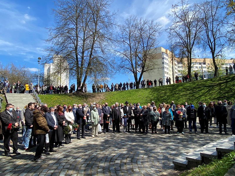 Поминальную молитву Кадиш прочел главный раввин Объединения иудейских религиозных общин в Республике Беларусь Шнеор Залман Дайч. Завершился митинг возложением венков, цветов и камней к Черному обелиску.
